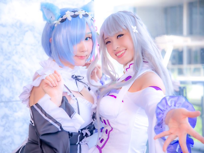 【Cosplay】 Re:ゼロから始める異世界生活💎 エミリア / ゆふぃ❤️ 🐈レム ねむちゃん photo 📷 マッキーさん@macky_noc チョコウサギさん@choco_usagc スズ太郎さん@todaysluckys Shinさん@shinryu0912 #リゼロ好きと繋がりたい #となコス #コス博