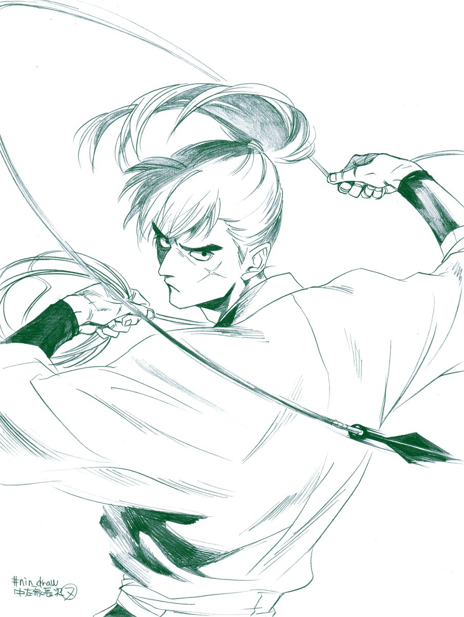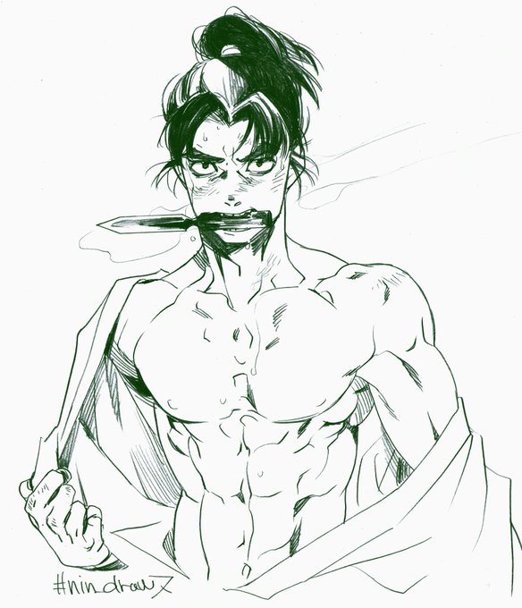 本気になったら衣類が邪魔になる潮江先輩です。 きっちり一時間! #nin_draw