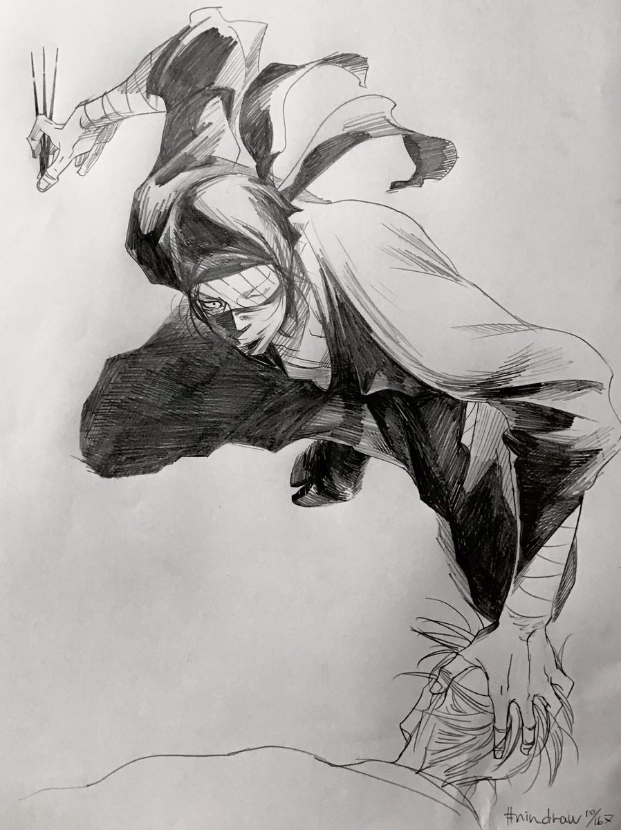 大遅刻の中在家長次……です。 23:45〜50分 #nin_draw