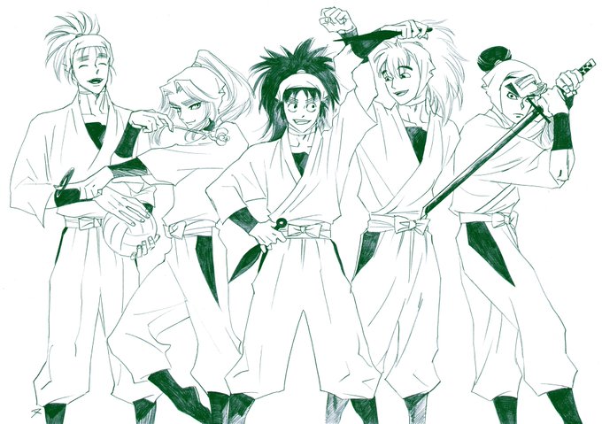 よーーーし!!!みんな着いてきてるなーーーーーー!!!!! って、命がいくつあっても足りない系委員会活動しかないからいいんだ…体育委員会は。だいたい金吾が白化してると可愛いな〜 #nin_draw