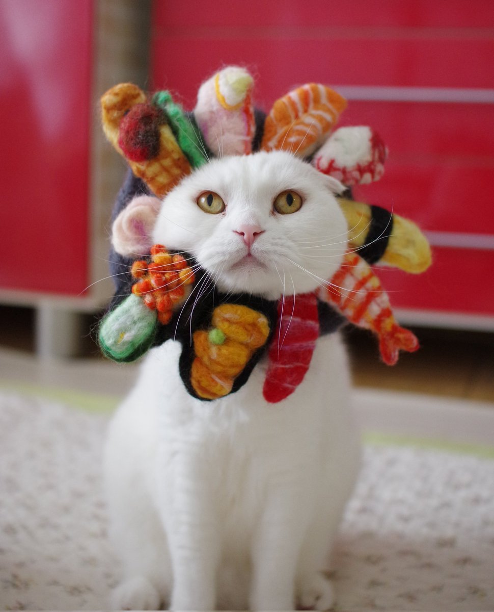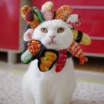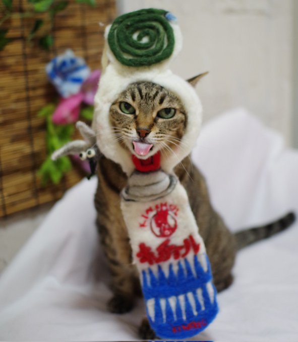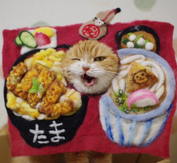 タマさんバーガー まだ #羊毛フェルト 、自己流でやり始めてすぐの頃の作品だから、今見ると凄い雑で恥ずかしいけど、似合ってて可愛いタマさん。 #猫好きさんと繫がりたい #ハンドメイド #猫 #スコティッシュフォールド
