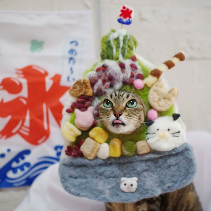 どの和菓子がお好みかにゃ??? タマ『真ん中の白いお餅が一番美味しいよ』 以前作った #羊毛フェルト の和菓子セット #猫好きさんと繫がりたい #ハンドメイド #猫 #スコティッシュフォールド