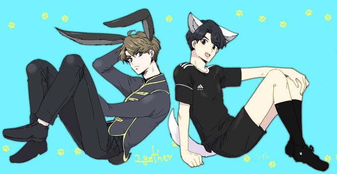 たなかさん@tanaka202011 リクありがとうございました💕💕 🐰ミミワットと🐺ミミタインちゃんでした何故か着てるものも反対にしてみました!! でかい絵。