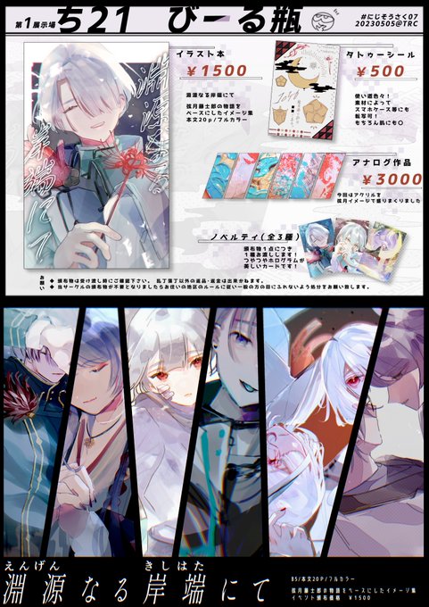7 50 【ち-21】びーる瓶 5/5にじそのご案内です どれもこだわりいっぱいの作品✍️ 詳細は支部にて!pixiv.net/artworks/10762… #にじそうさく07 23/04/29 16:00