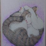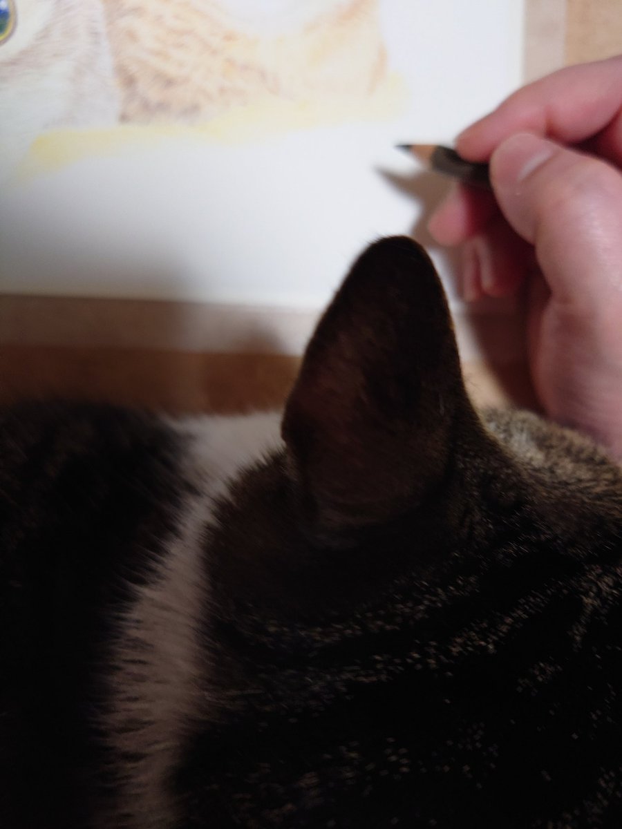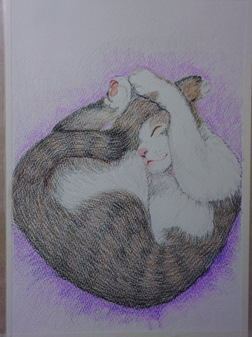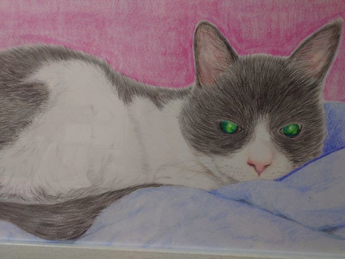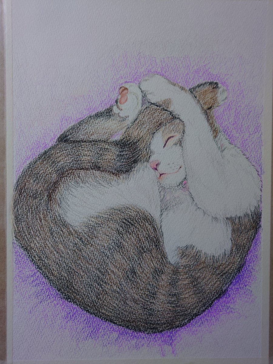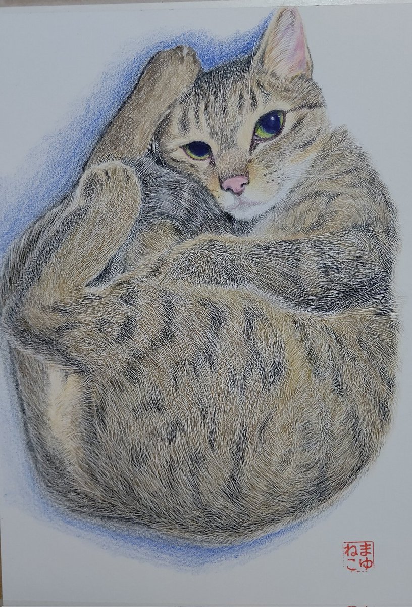 ちっこの絵出来ました 判子押すの失敗しました😭 鉄筆で最初にグリグリ描いた意味はあまり無くなってます ホルベインカラーペンシルスケッチブック ファーバーカステルポリクロモス ホルベインアーチスト カリスマカラー プリズマカラー #猫の絵 #色鉛筆画 #アナログ絵描きさんと繋がりたい
