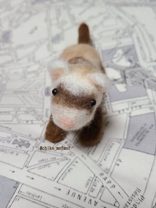 ようやく仕上げられました、フェレット様!!! フェレット様初めてちくちくしたので、似せられたか不安一杯ですが…💦 少しでも可愛いと思っていただけましたら幸いです🙏 #羊毛フェルト #フェレット