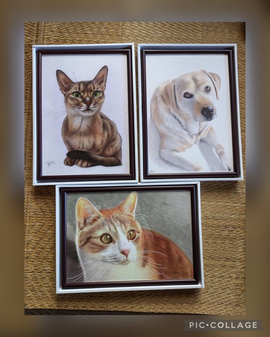 先日、イロドリアル原画展で買った複製画が届きました。 はぁ~゚゚(*´ `* )°゚♡ 心残りは、悩んだ2枚の絵を買わなかったこと。ぼんぼんさんのトイプーと音海さんのサビ猫。通販とかで買えないかな。 #イロドリアル #イロドリアル原画展 #色鉛筆画