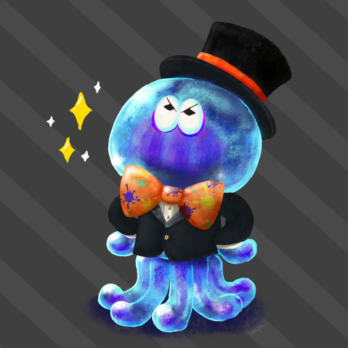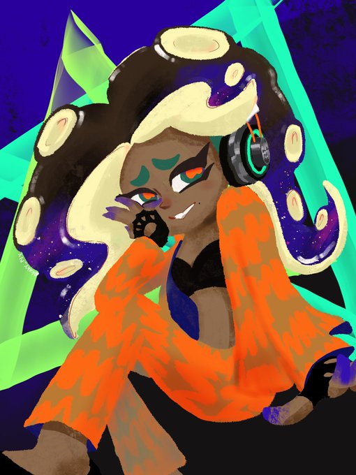 昨日からイイダさんのバブリースーツとプラネタリーなゲソが頭から離れなかった今朝の落描き #Splatoon3 (反応くれた方すいませんホクロ忘れて上げ直しました🤩まぁrkgkだからいいんだけど)