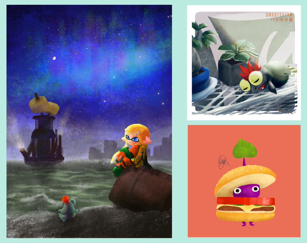 #今月描いた絵を晒そう 今月から厚塗り練習してたので枚数は少なめ。もっと早くかけたらよいのだけど兼業はあらためてつらい遅筆ぇ🤤今描いてるヤツ終わったらスプラ2の絵をいっぱい描きたい〜残り2ヶ月…3でたら3いっぱいいっぱいで描かなくなっちゃいそうだから頑張る!焦