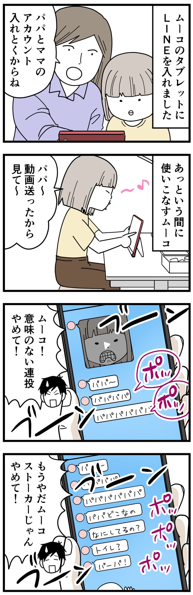 パパとママ限定でLINE始めてみたら案の定やりたい放題だったムーコ。 #育児漫画