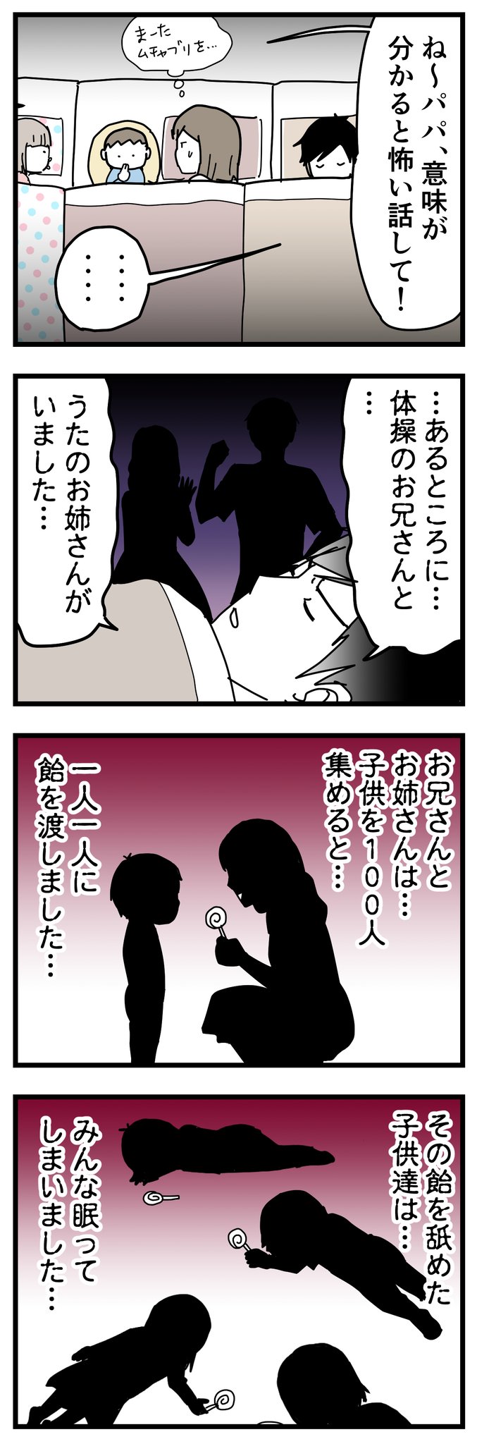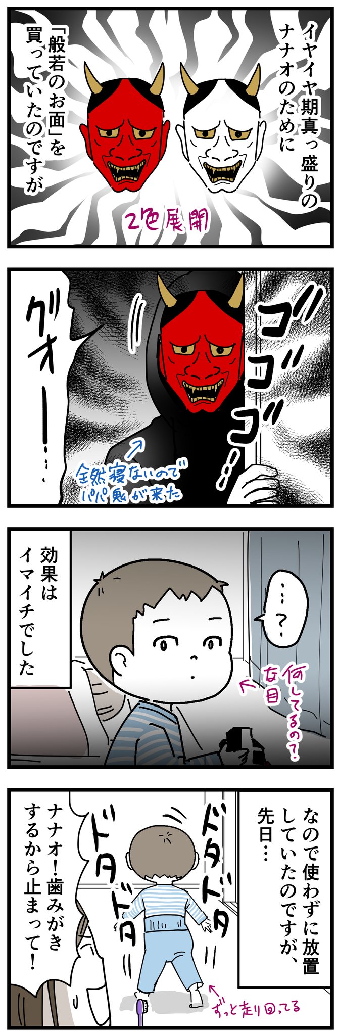 ナナオが2歳の時の漫画です(再)。 イヤイヤ期には刺激が強すぎたパパの名演技。 #育児漫画