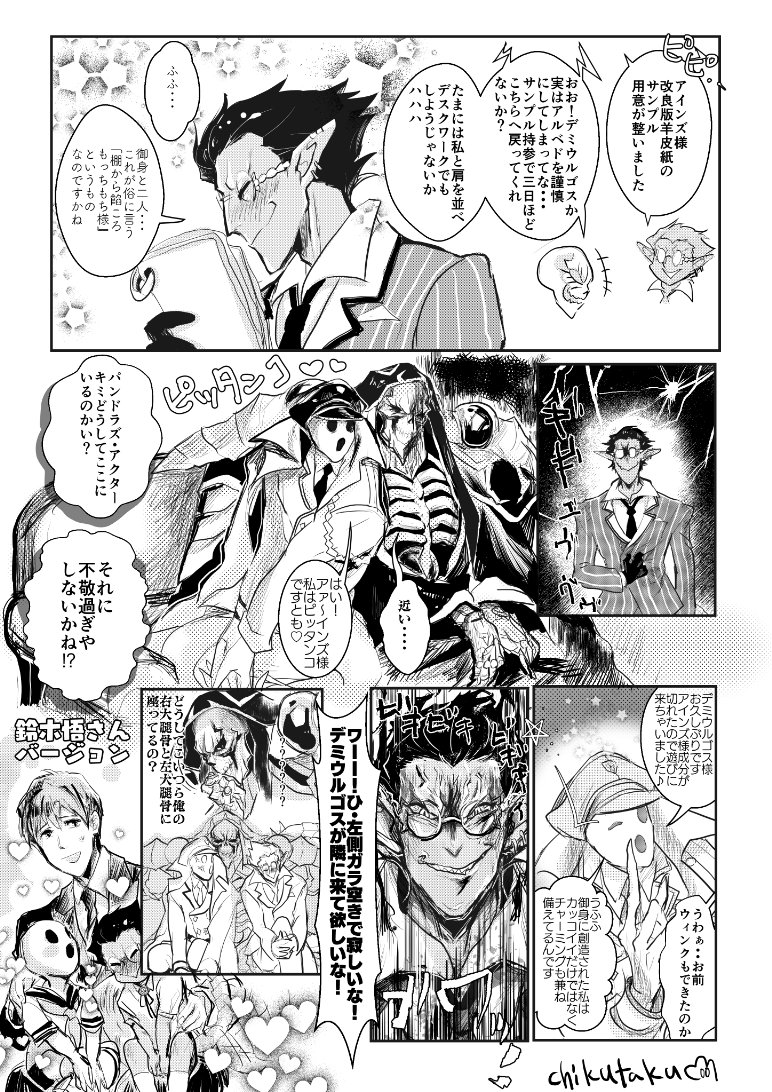 オバロのデミアイ・パンアイ漫画仕上がりました❤️ デミウルゴスの表情種類色々描けて楽しかったです😊いっぱいビキビキさせちゃったっすvパンドラズ・アクターおもいっきりアインズ様補充してます(^w^)