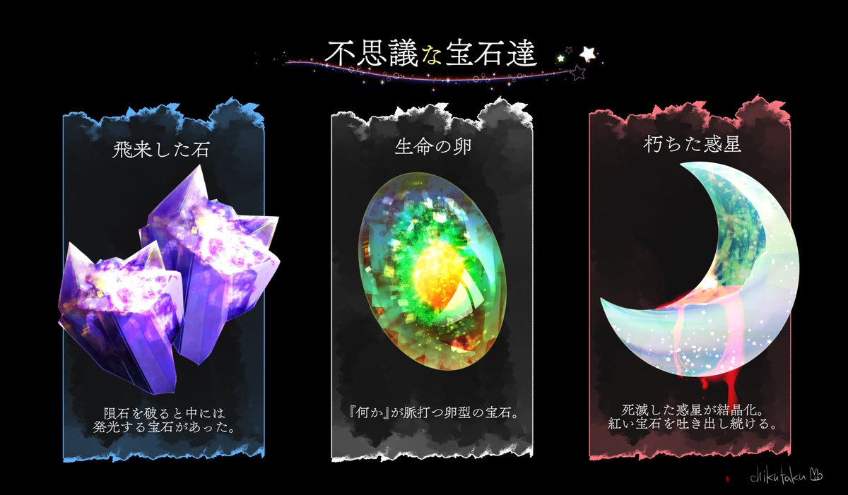【💎不思議な宝石達🔮】空想の宝石描いてみたです。