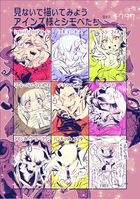 見ないで描いてみようアインズ様とシモベたちテンプレートお借りして描いてみましたー(0w0)💀御身とシモベっちギュっと描けてめちゃ楽しかったです💕