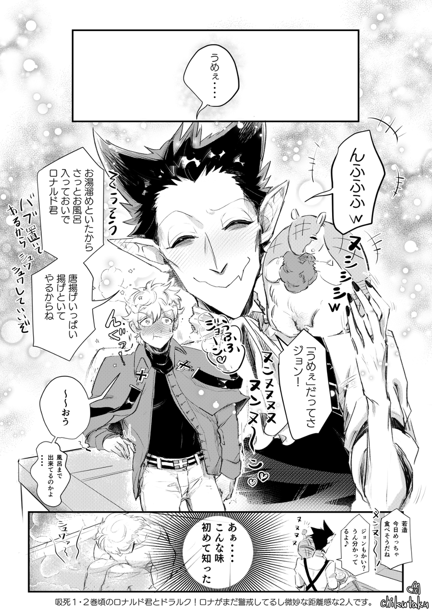 ロナドラ💗好きな奴の匂いはどんな香水よりも良い匂い♡ 🦇鼻息丸ちゃんなドラちゃんをロナルド君が吸います😙 ジョンは週チャン立ち読みしてます。