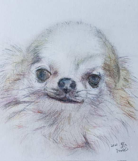 0 40 うちのぴんちゃん (ᐡ ᐧ ﻌ ᐧ ᐡ) なでなでしてほしい時の顔 🥰 #チワワ #イラスト #パステルと色鉛筆 22/08/15 21:48