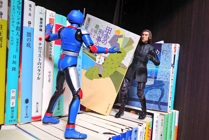 #夜のフィギュア撮影会 5/29 お題『選択』 警察小説にハマった光太郎に、中々良いチョイスの本を勧める、書店員ベン・ソロ。 「タイトルはあれですが、しっかりとしたトリックがありますよ」 #オモ写 #フィギュア撮影友の会