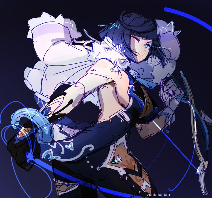 'Do you prefer the artificial light of the cities and towns, or the moonlight in the mountains?' #Shenhe #GenshinImpact #fanart