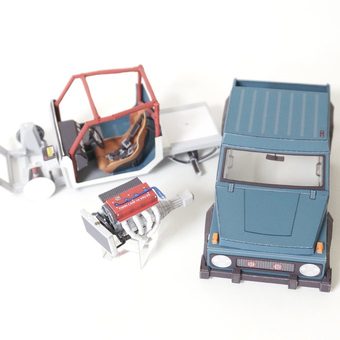 せっかく作ったエンジンがボディで隠れてしまう、、、 次作は完成後もエンジンが見えるモチーフにしようと思いました #ペーパーモデル #ペーパークラフト #ピックアップトラック #papercraft twitter.com/chima_info/s…