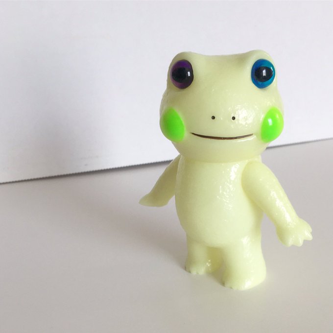 2月9日ワンフェスに持っていくもの6 オタフクカエルくん 蓄光(GID)バージョン。 写真だとわかりにくいですが、オッドアイになっています👀 卓番8-29-12 #chimagroup #sofvitokyo #sofubi #sofubitoys #sofubitoy #sofubitokyo #ソフビ #WF2020w #ワンフェス #ワンフェス2020 #frog #カエル