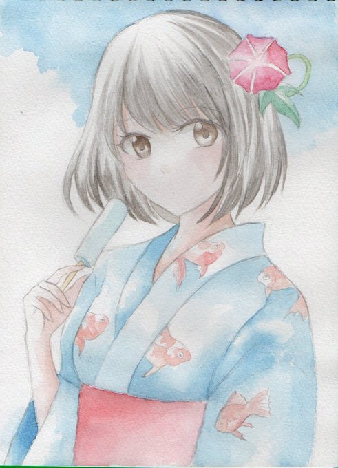 10 50 #アナログイラスト #透明水彩 #着物 #花 23/06/02 17:23