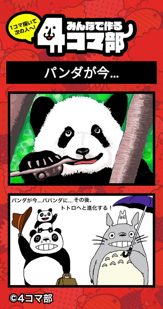 作品58【パンダが今…】 一コマ目を描きました。バパンタ! 4コマ部のアプリでこの漫画を見てみよう! #4コマ部 #4コマ漫画 #漫画が読めるハッシュタグ #みんなで楽しむtwitter展覧会 #絵描きさんと繋がりたい link.4komabu.com/FEG8cCSoueUv4R… #4コマ部