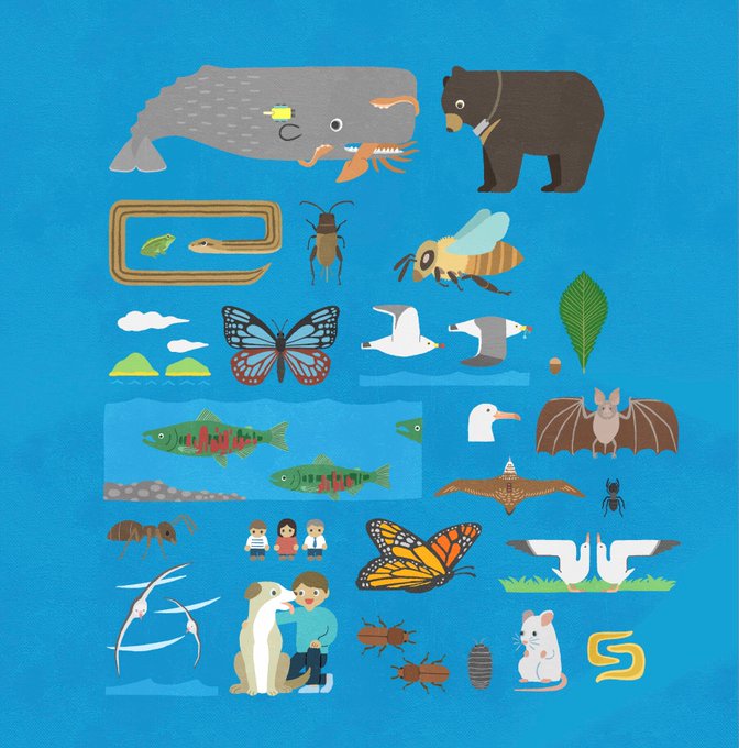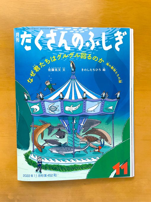 たくさんのふしぎ11月号(発売は10月初旬)のイラストを担当しました。 文はバイオロギングの佐藤克文先生、本文デザインは学生時代よりずっと憧れだった名久井直子さんです。 海洋動物に共通してみられた、謎のグルグル行動に関する絵本です。 Amazonで予約できます→ amazon.co.jp/dp/B09QFCLVB9/…