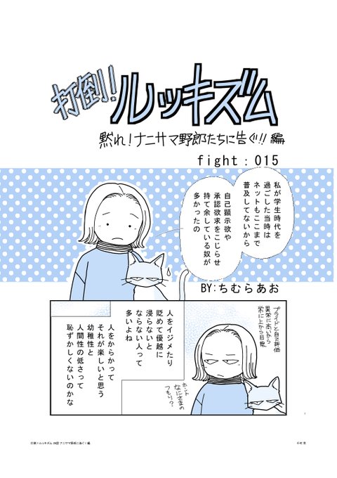 打倒!ルッキズム 黙れ!ナニサマ 野郎に 告ぐ!編 fight:017 正月に投下するのはどうかと思うので、早めの更新になりました… 次回は2022年1月8日更新です(;・∀・) 毎週土曜更新! 虐待・毒親・ルッキズムによって 生きにくさを強いられてきた人に贈ります! #漫画が読めるハッシュタグ
