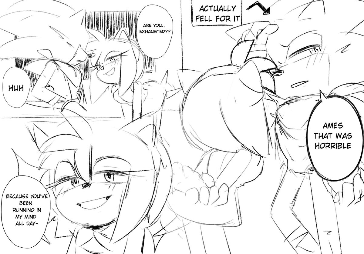 Amy: See ya! Sonic: Try catching us with those roller skates of yours?! Shadow: THEY'RE AIR SHOES! GET BACK HERE OR ELSE!