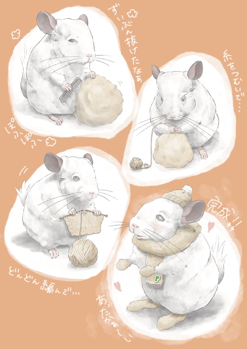 69 443 友達の抜け毛を再利用するチンチラ🐭🧶 #チンチラ #chinchilla #イラスト 22/01/22 19:28