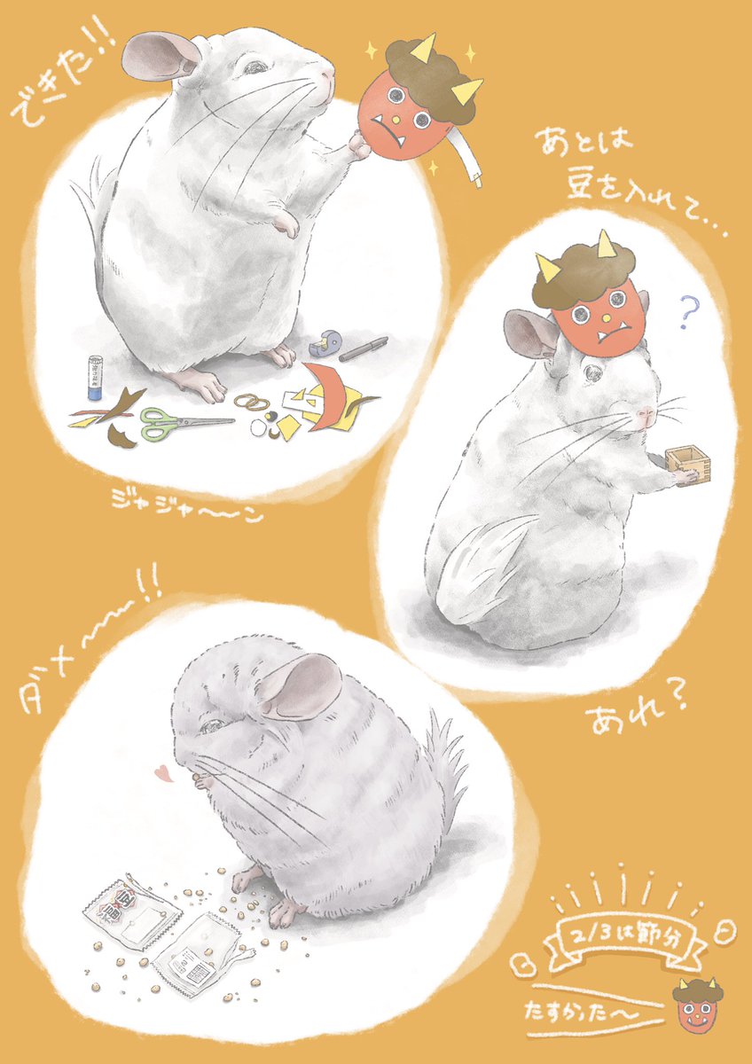 39 324 豆まきをしたいチンチラ🐭 #チンチラ #アンゴラチンチラ #chinchilla #イラスト 22/02/03 19:00