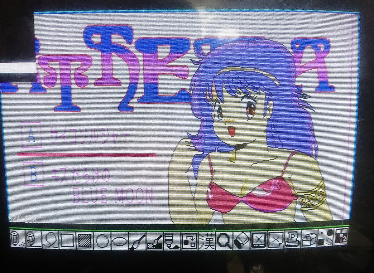 PC-8801ディスクのカビとりチェックで高校時代使ってたグラフィックツール ダ・ヴィンチ起動できた✨ セーブデータが初めエラーで読み込めなかったけど何度か繰り返してたらできた👍✨このツールでドットイラスト覚えてゲーム業界入るきっかけができた貴重な体験🤗 #PC8801 #イラスト #ドット絵