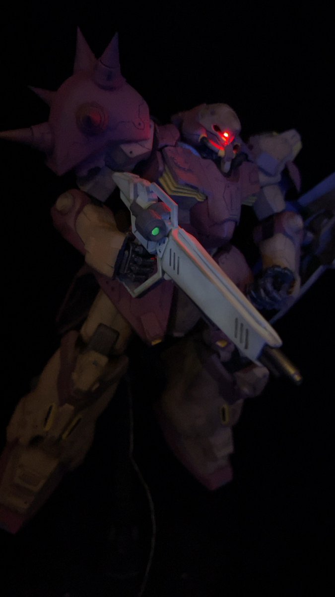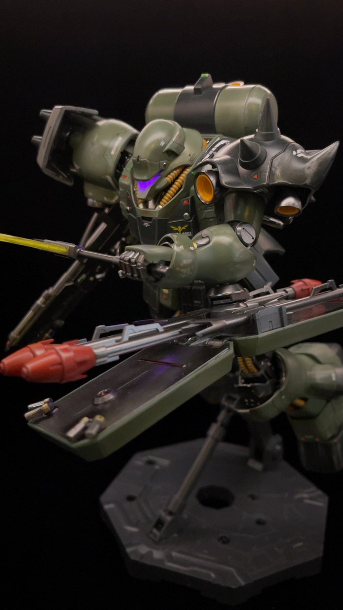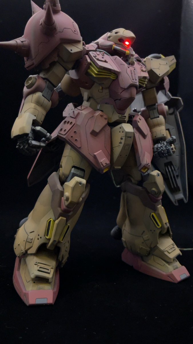 MGギラ・ドーガ出来ました。今回はシルバーサフして表面の塗装を少しヤスッて金属感を、バイザーも少し狭くしてみました😊思えば初めての量産カラー。緑は落ち着きますね🤭#ガンプラ #ガンプラ好きと繋がりたい #ガンダム