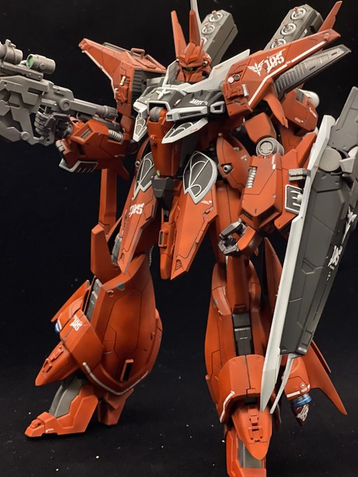 リバウ出来ました😄サザビーから意匠を次いで背部にファンネル、短かったプロペラントタンクの延伸、バルカンメタル化して存在感を増してみました☺️フル・フロンタル幻の機体、これもカッコよいですね! #ガンプラ好きと繋がりたい #ガンプラ #ガンダム