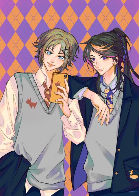 #MystArt #YaminoArt 学校里人气很高的mysta先辈和shu先辈🧡💜 The popular Mysta senpai and Shu senpai in school