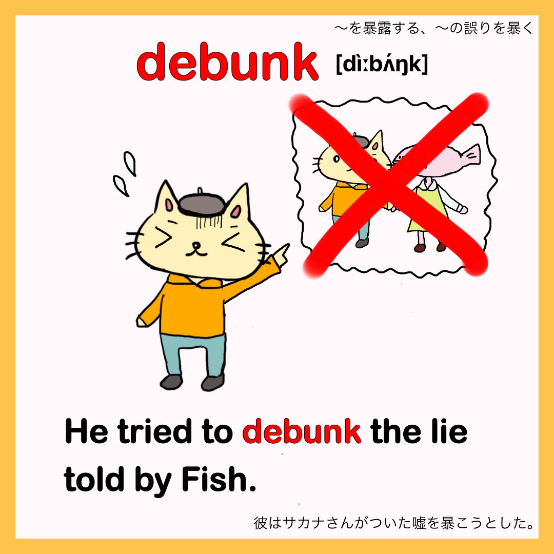 🌻イラストで覚える英単語(英検1級編)🌻 ※再アップです debunk (v. 〜を暴露する、〜の誤りを暴く) = to show that an idea or belief is false #ちーりんmamaイラストで覚える英単語 #ejb19 #英語学習 #イラスト
