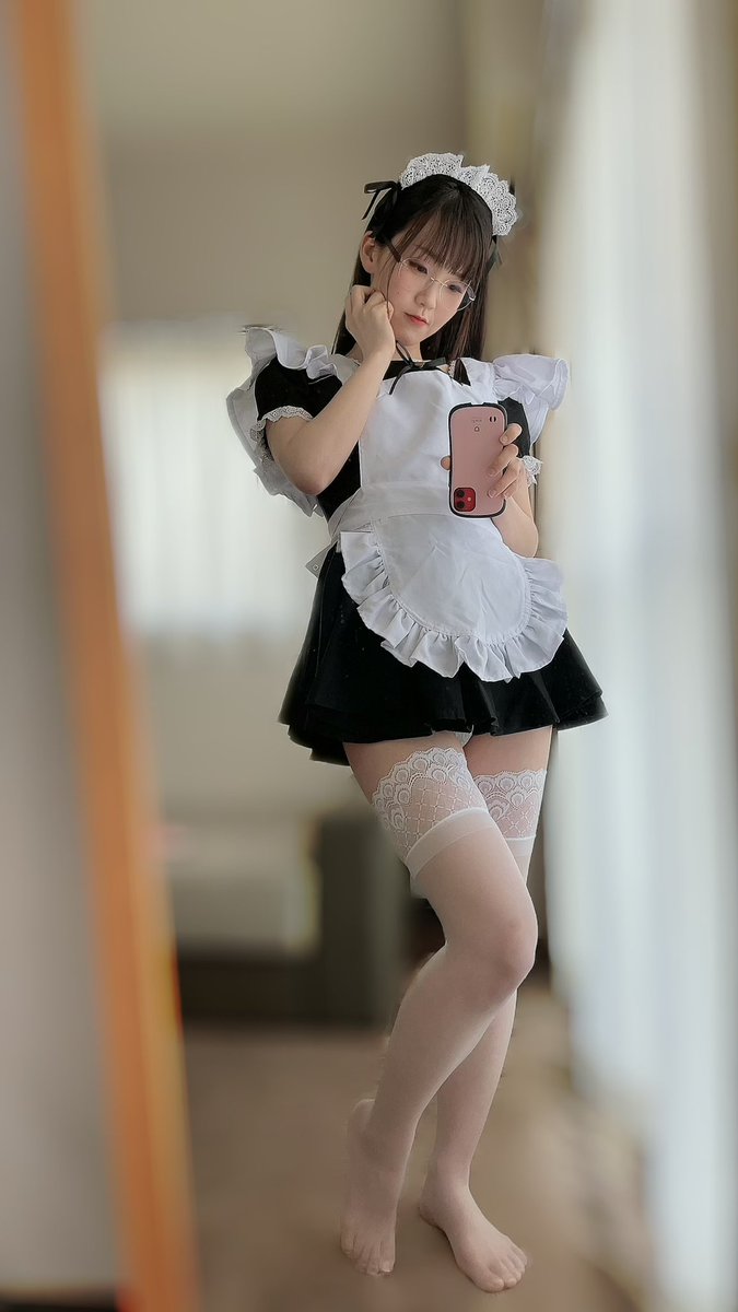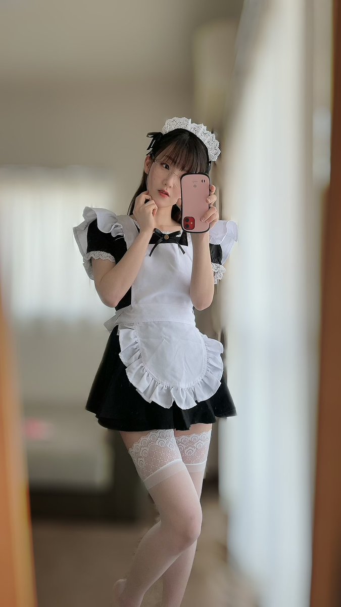 おはようございます♡ 今日はメイドの日なのでメイドさんです💕 #cosplay #コスプレ #白ニーソ