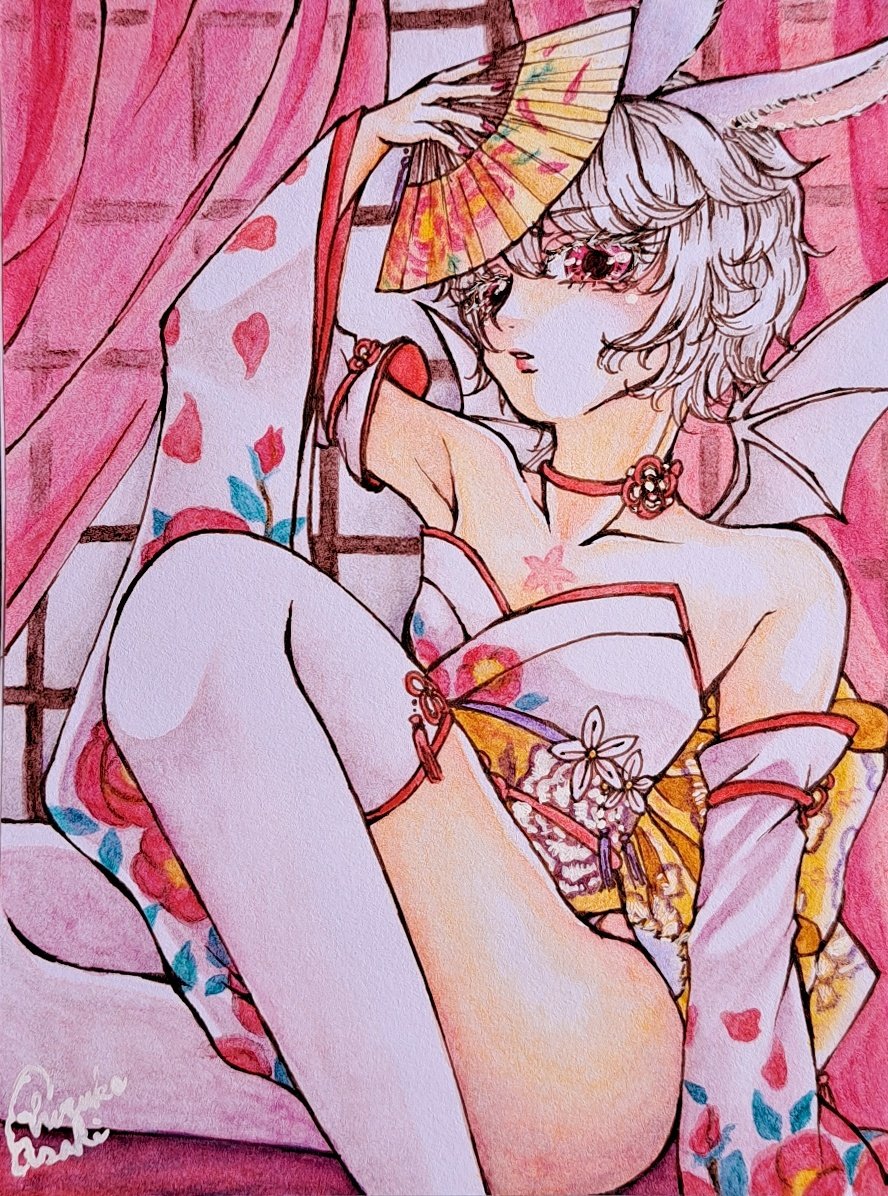 0 4 和風🌸×バニー🐰×小悪魔😈 #オリジナルイラスト #創作イラスト #水彩色鉛筆 22/08/06 09:10