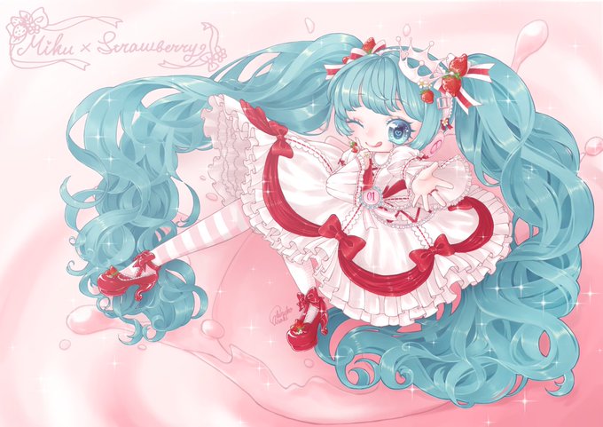 本当はミクさん15周年にと思って描いてたいちごなミクさん、大遅刻どころじゃない遅さで完成しました……なんでもない日のうちのいちごミクさんってことで🍓 #初音ミク #イラスト