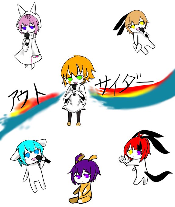 #すとぷりギャラリー 【過去絵リメイク】 アウトサイダーのPVに出てくるキャラのコスしたメンバー達を描いてみたキャラデザ少し変わってるメンバーもいるので描き直したマイク持ってるメンバーは歌ってみた動画出してる組