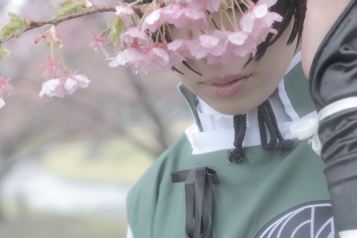 コスプレ/石切丸 リアル桜と撮影したことあります。雨もセットで楽しかったな☺️ 初の桜撮影に雨撮影でした👍 りくとさん、幸運をありがとうございました🌸 photo*りくと