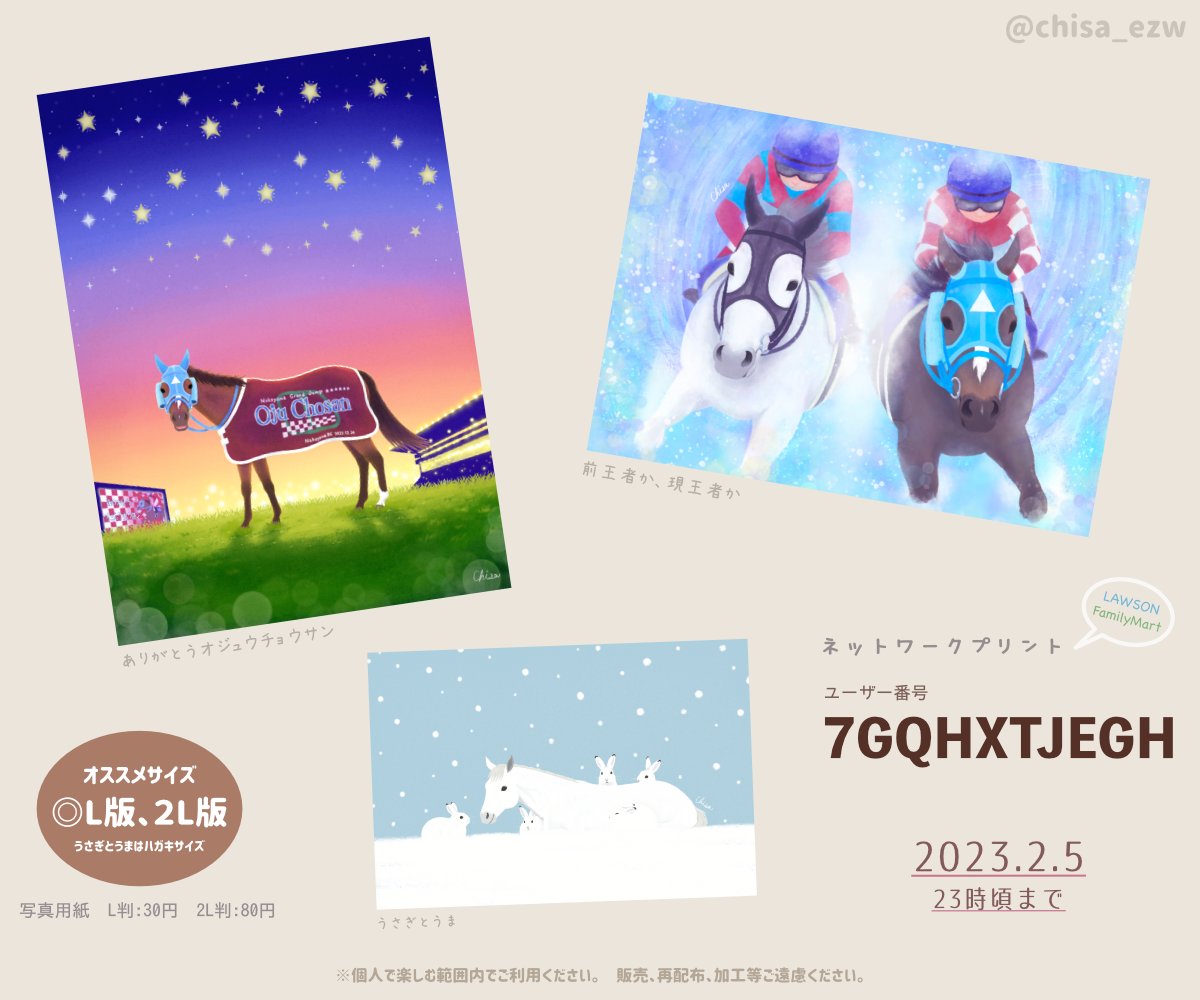 🏪ネットプリント登録してみました(ローソン・ファミマ) オススメはL版、2L版(うさぎとうまはハガキも◎)フチ無しフチ有りどっちでも大丈夫そうです👌 2月5日 23時頃までです、よろしくお願いします🙇♀️ ※個人で楽しむ範囲内でお願いします!