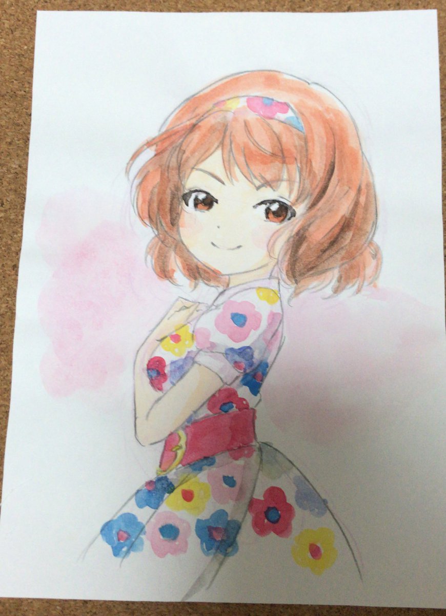 #モバマス版深夜の真剣お絵かき60分1本勝負 #八神マキノ マキノちゃん、髪型どうなっとるん… むずかった…
