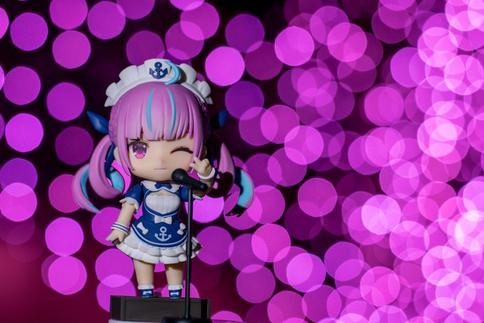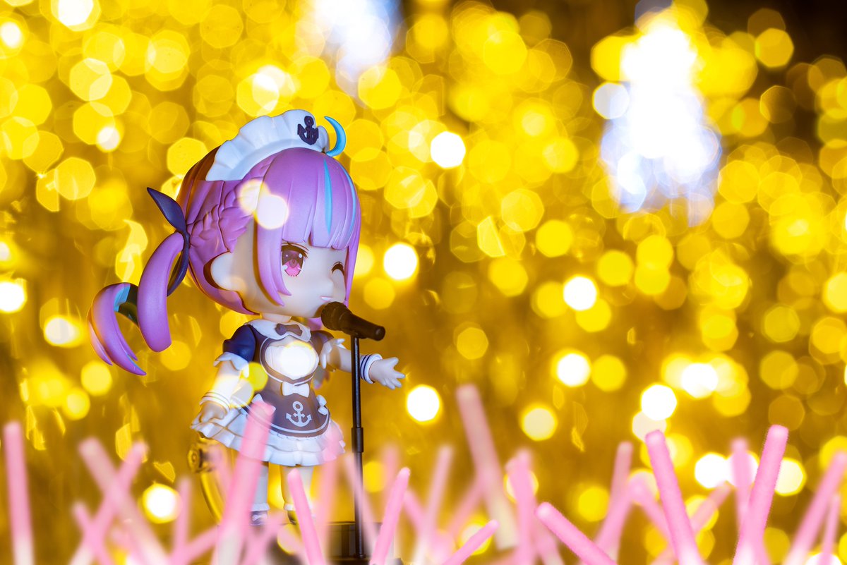 あくたんのねんどろいど写真をちょっと編集してみた。 ライブっぽくなったかな? (今日の4周年記念ライブ楽しみですね~) #湊あくあ #ねんどろいど #あくあーと