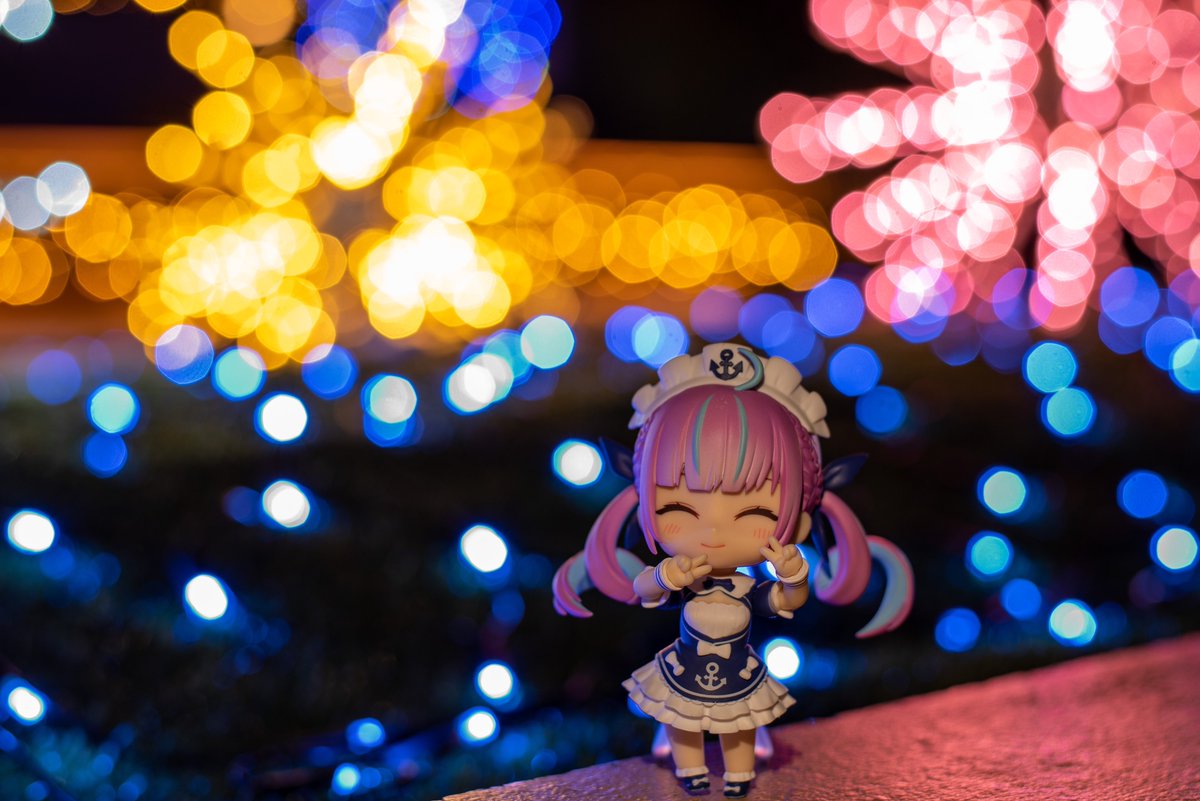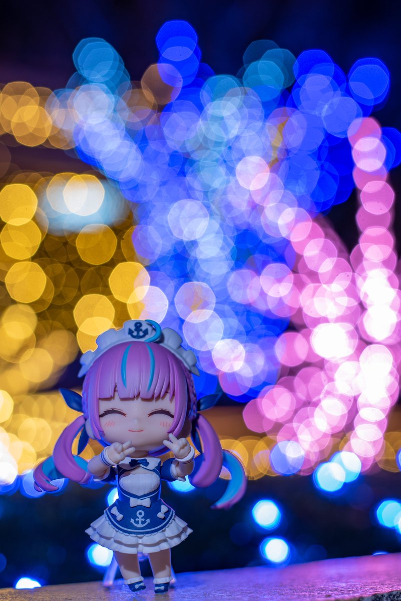 イルミネーションが綺麗だったので撮影に行ってまいりました! あくたんのねんどろいどやっぱりいいですね! #湊あくあ #あくあーと