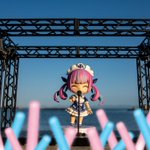青空広がる夕方の浜辺であくたんのねんどろいどの撮影! サイリウムをあくあ色に編集したらフェスみたいになった! #湊あくあ #あくあーと #ねんどろいど