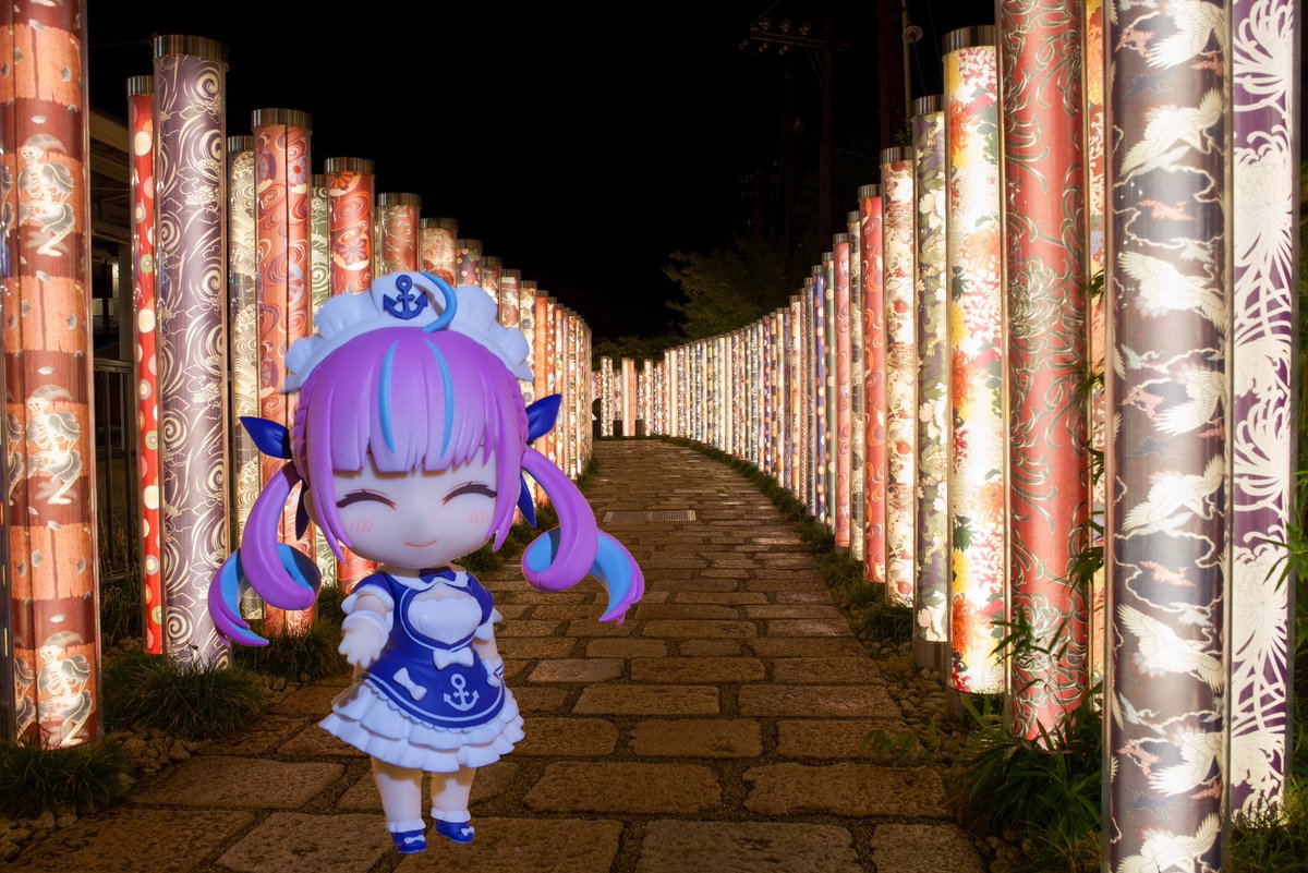 1 32 あくたんに誘われるがまま進むは京友禅の光林 美しく幻想的な京友禅の光るポールがずらりと並ぶ #湊あくあ #あくあーと #ねんどろいど #ねんどろあくたん 22/09/28 23:35