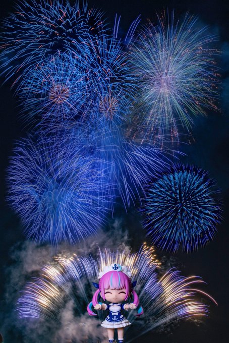 笑顔はなひらく青く美しい花火 あくたんねんどろいどと共に····· #湊あくあ #あくあーと #ねんどろいど #ねんどろあくたん