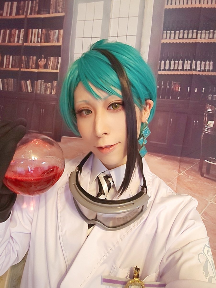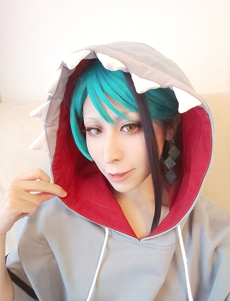 4 33 久々のコスプレ!! リハビリ兼ねてジェイド練習自撮り🐬 実験着のゴーグル反射してしまうから今回は断念した😢 🦈パーカーも楽しい😂 20/09/08 19:01