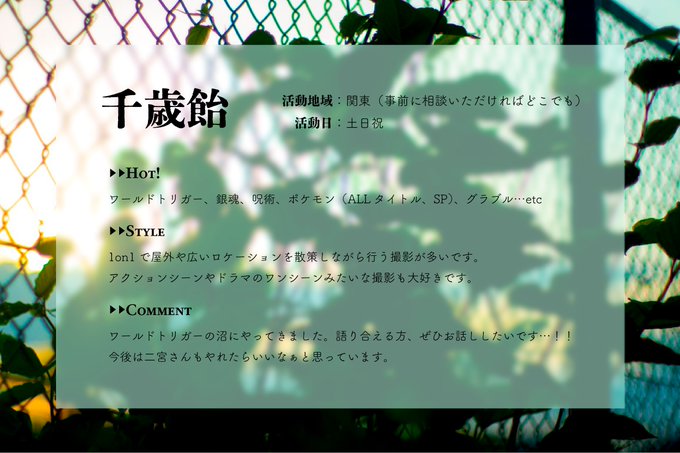 自己紹介更新も兼ねて! 呪術・銀魂などのWJ作品のコスプレしたりたまに撮影したりしています。 ワートリを語り合えるお友達が欲しいです…! #相互さんの相互さんと繋がりたい
